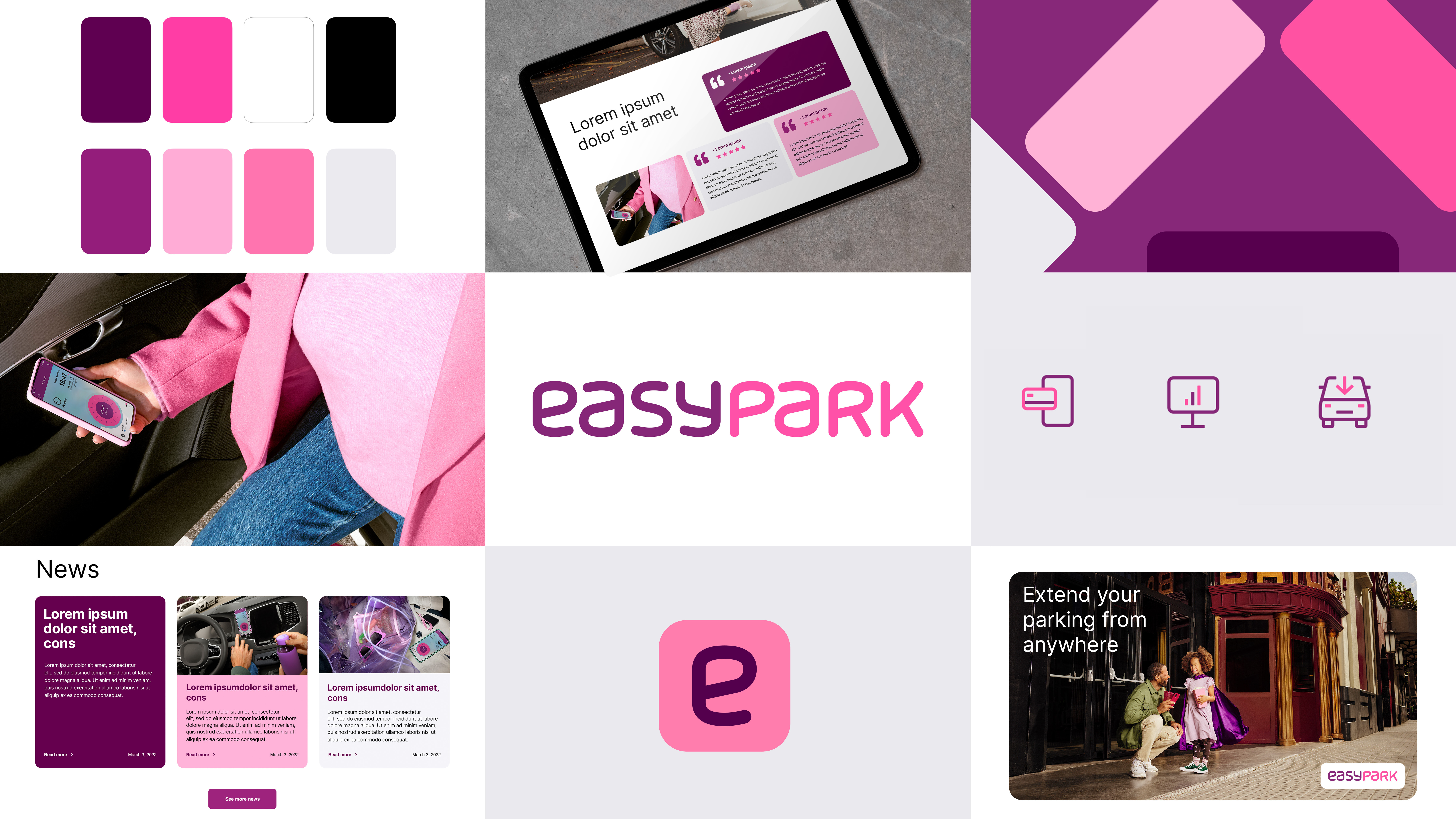 The new design is based on a rectangular shape, easily associated with a car or a parking lot. This is supported by playful graphical elements, creating a unique expression for EasyPark across all different touch points such as the app, web and signs.